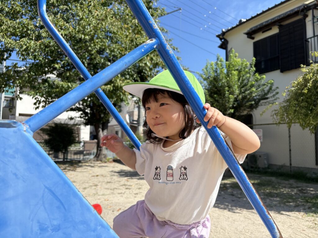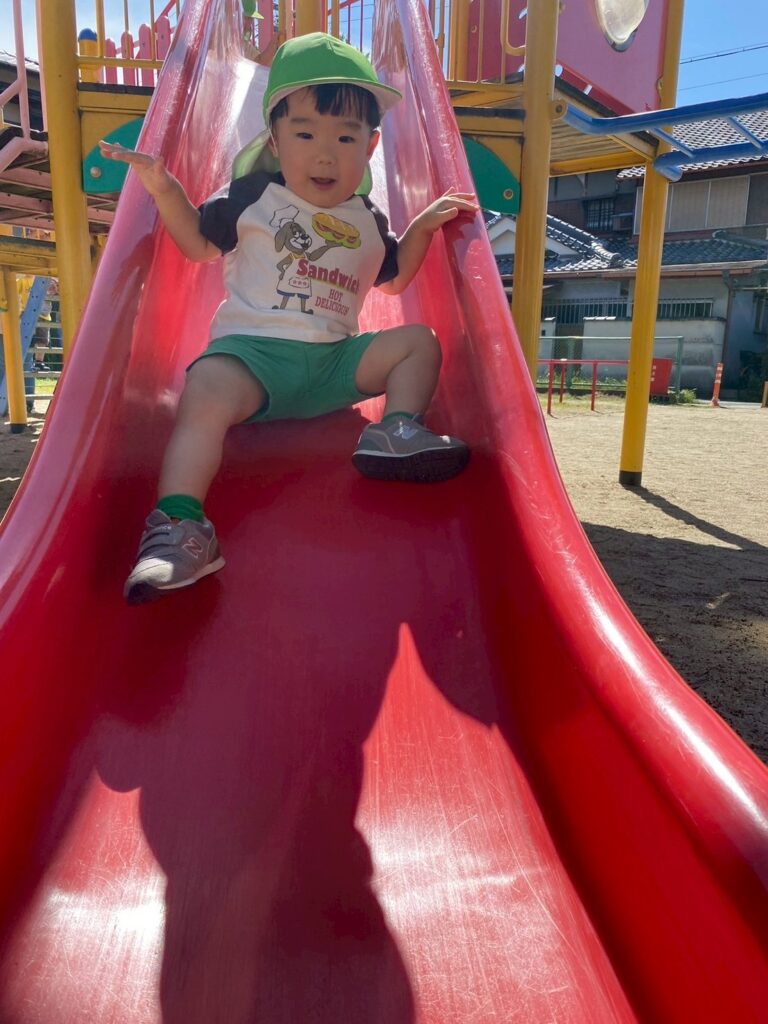 戸外遊びを通して自然に触れる機会を増やしたり、身体の使い方や体幹が大型遊具で遊ぶ中で自然と身についていくといいなと思っています。今後も散歩を楽しみたいと思います♪