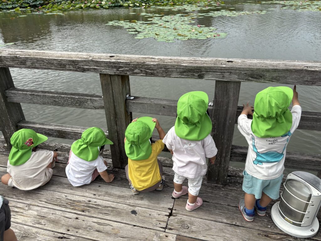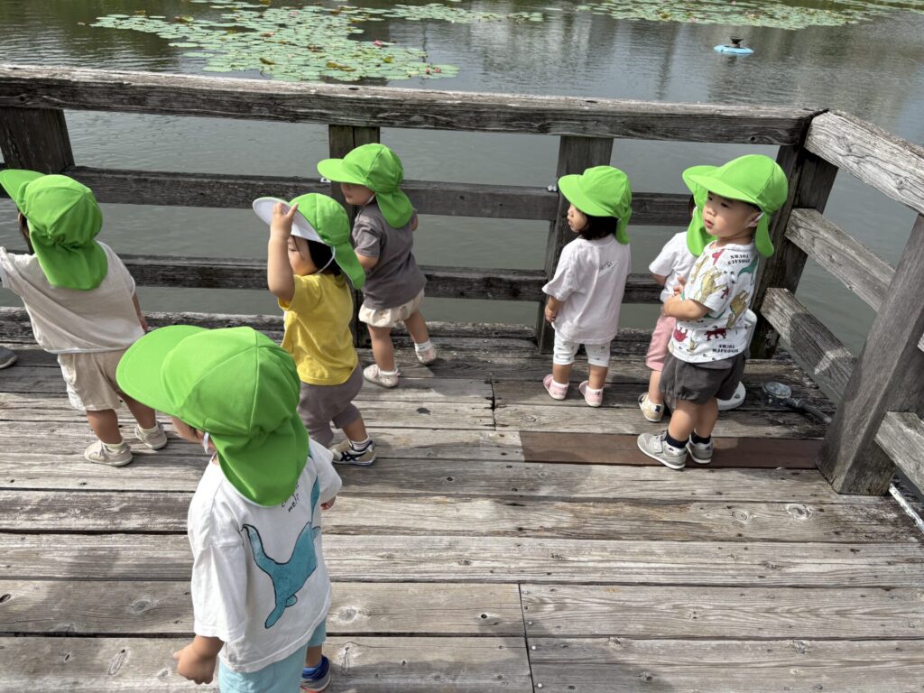 夏の本格的な暑さが少しずつましになってきました。ちゅうりっぷ組では近くのこすもす公園や小寺池へ散歩に出掛けています。