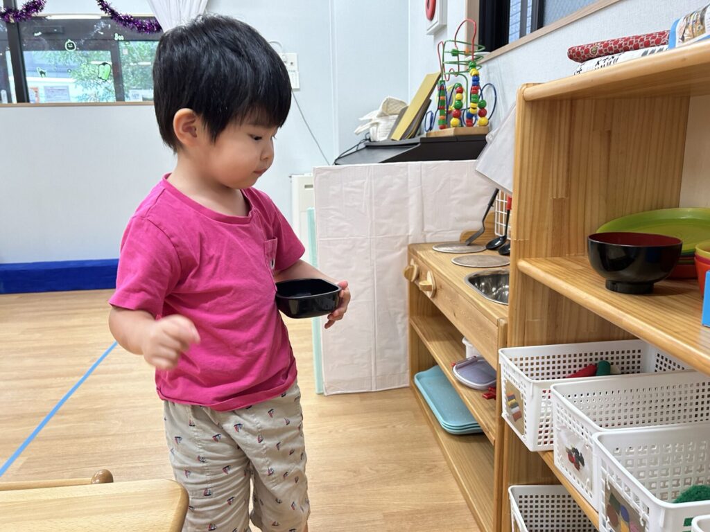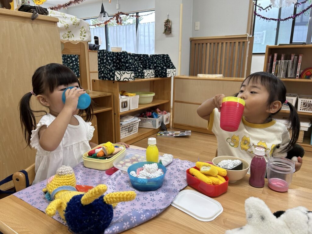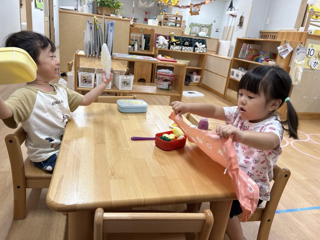 来月の遠足に向けて、お部屋にお弁当箱やナフキン、卵焼きなどの具材を用意しました。