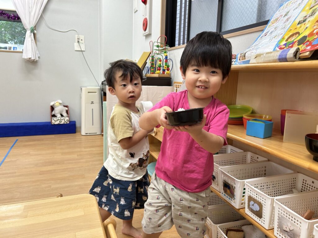 お弁当箱を開けるときに、「わぁ!おいしそう!」と嬉しそうにしている子どもたち。