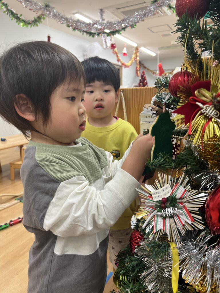 クリスマスのイベントが終わり、ツリーの片付けをしているとお手伝いも一緒にしてくれたひまわり組の子どもたちでした(^^)