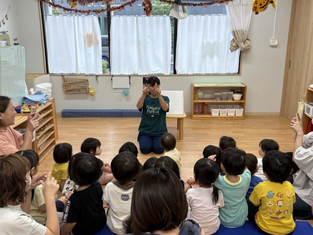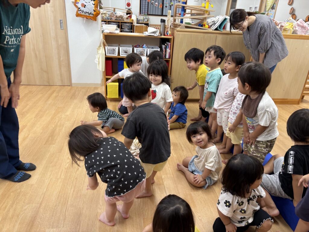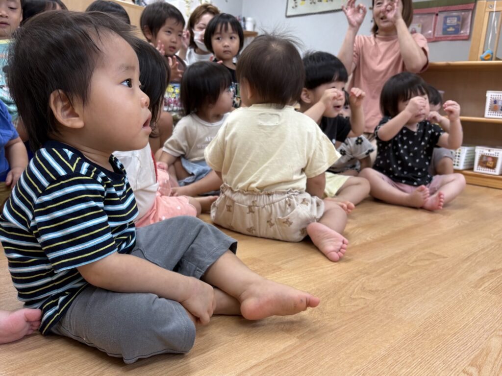 ちゅうりっぷ組のお部屋に集まり、「おべんとうばこのうた」の手遊びをしました。