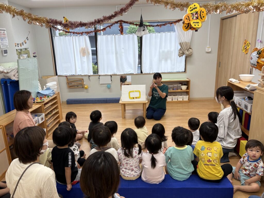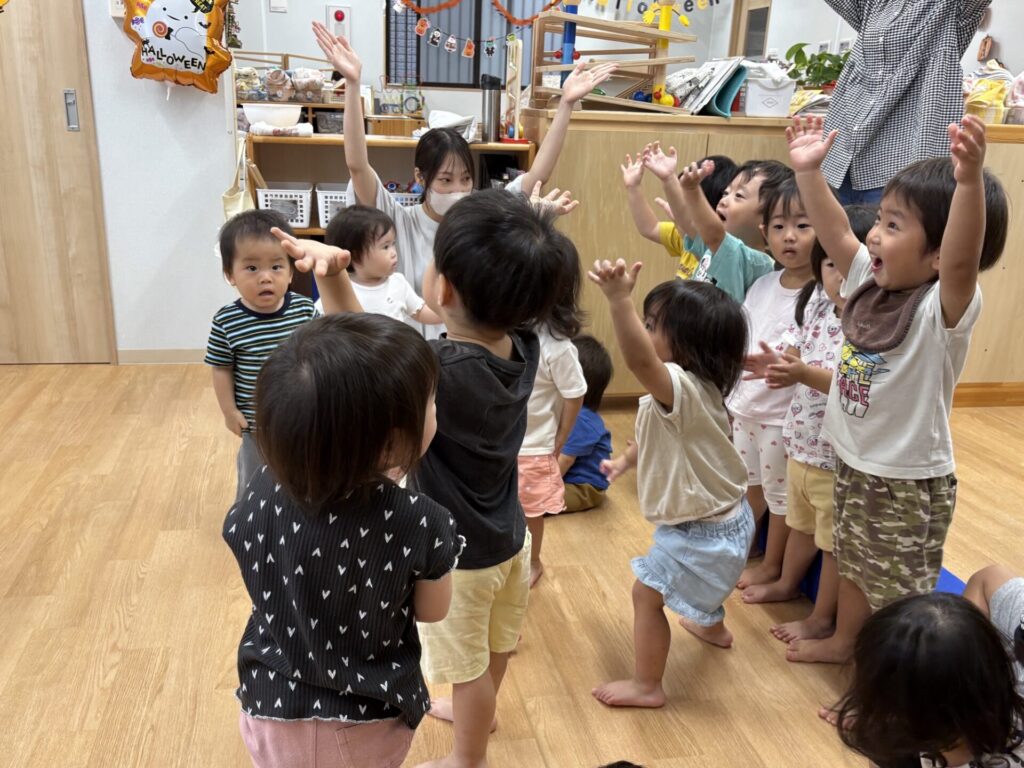 「おはようございますのうた」と10月の歌「いもほりのうた」を元気いっぱい歌いました。