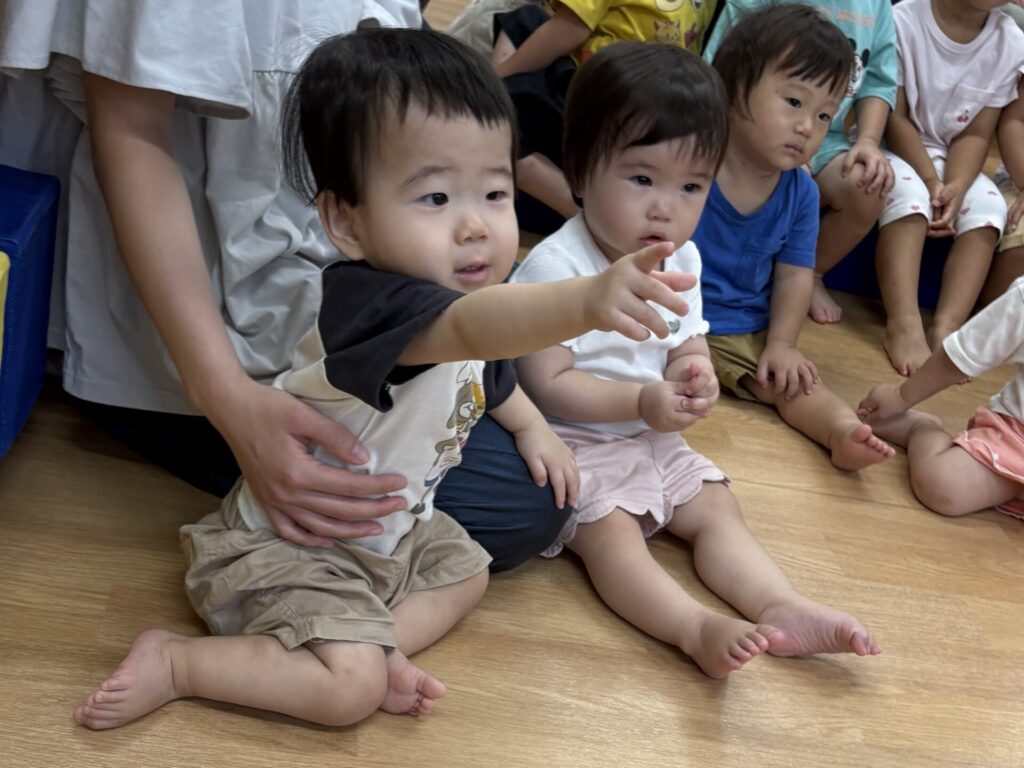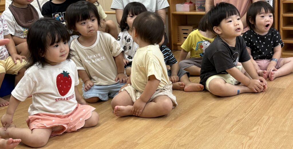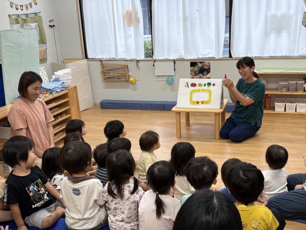 すずらん組さんも、食べ物を見て指さしをしたり、「あー!」と声を出したり、次は何が出てくるのかな?と興味津々なお顔でパネルシアターをみていましたよ。